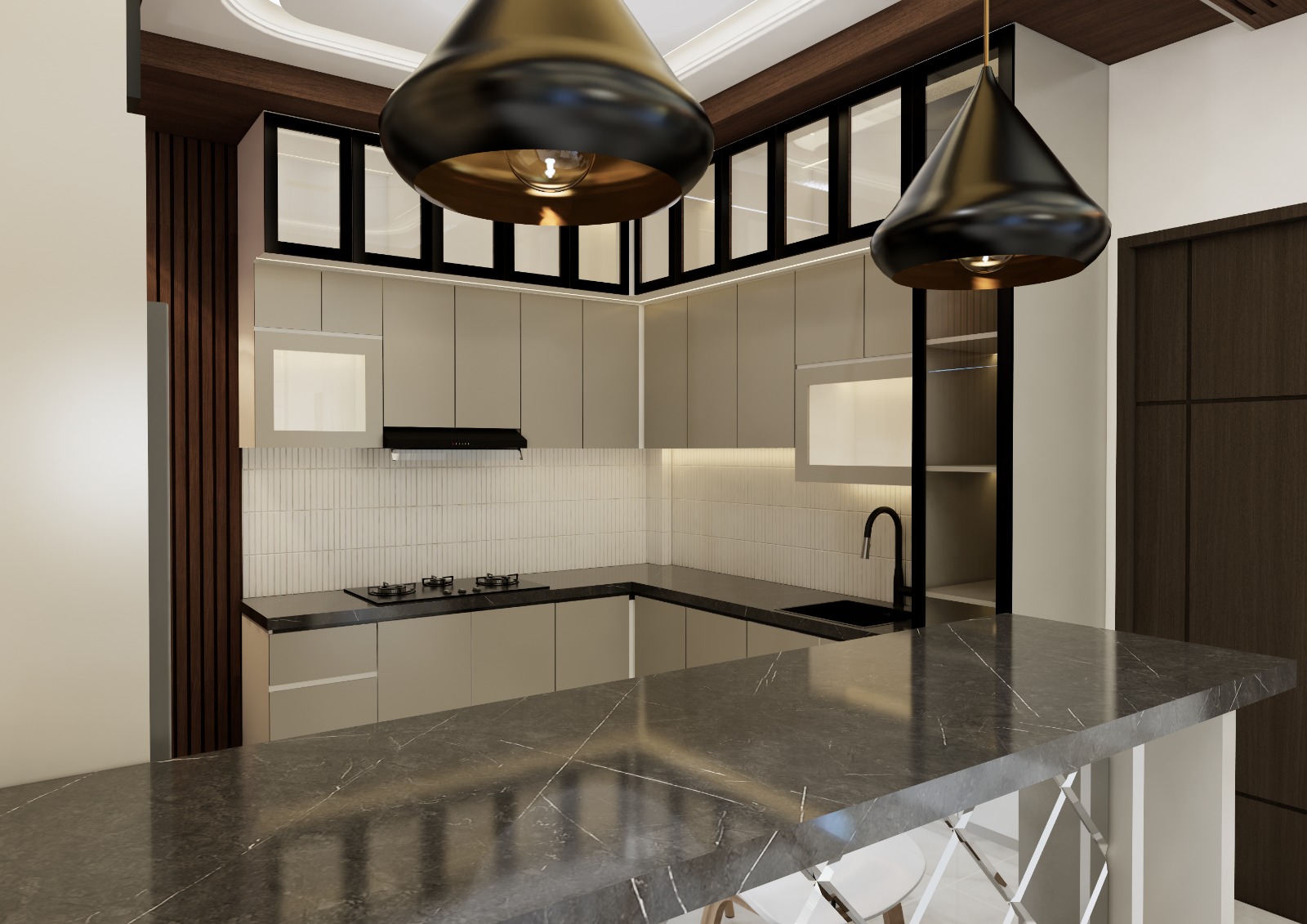 Proyek ini berfokus pada transformasi ruang hunian, menggabungkan estetika modern yang bersih dan fungsional. Tim Kreatif Production memulai proyek dari tahap konsultasi dan desain, mendengarkan kebutuhan serta preferensi klien secara detail. Desain yang dihasilkan menonjolkan garis-garis tegas, palet warna netral, dan penggunaan material berkualitas tinggi yang menciptakan suasana elegan dan nyaman.